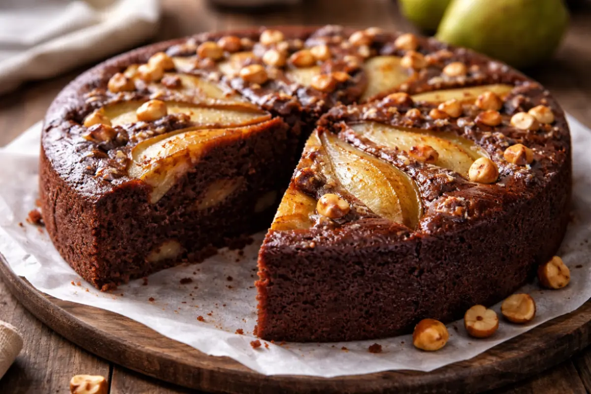 La torta al cioccolato, pere e nocciole sta proprio lì, in quella zona dove il classico resta riconoscibile ma prende una direzione leggermente diversa. Non è una rivoluzione, ma non è nemmeno la solita torta che dimentichi appena finita